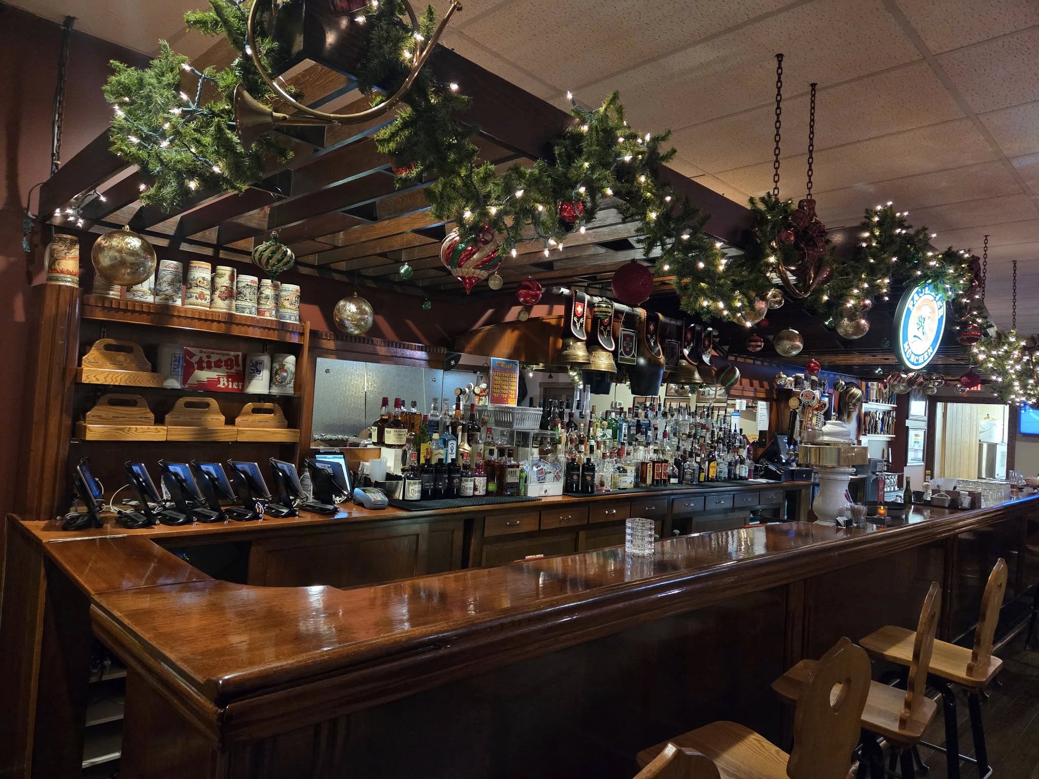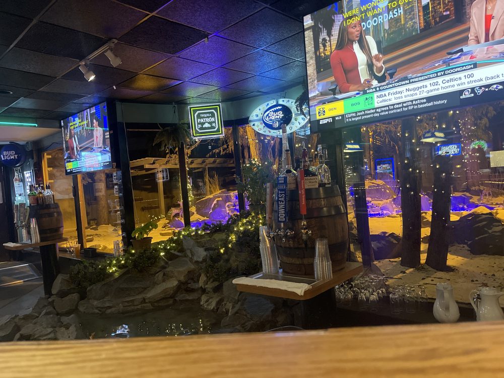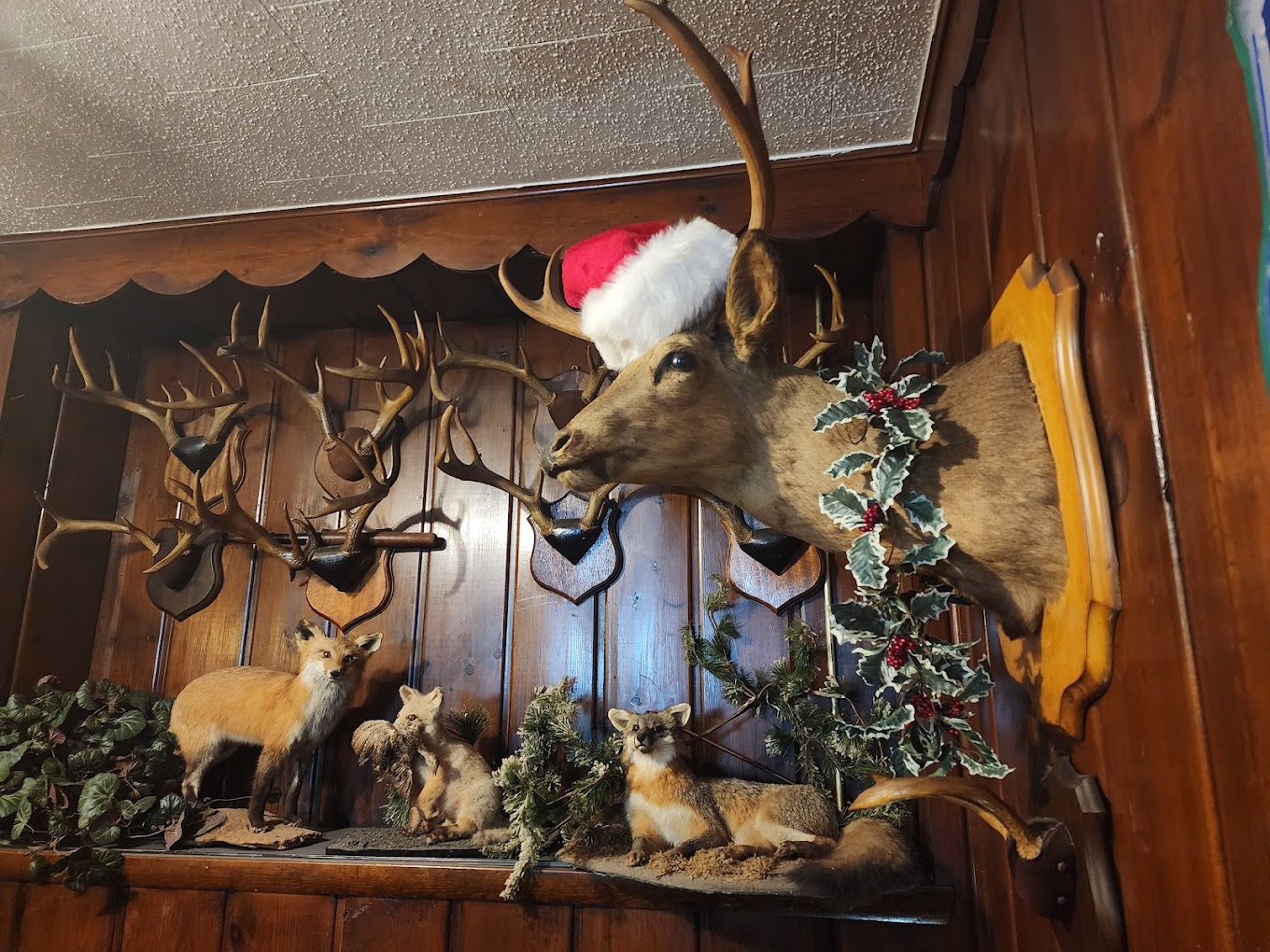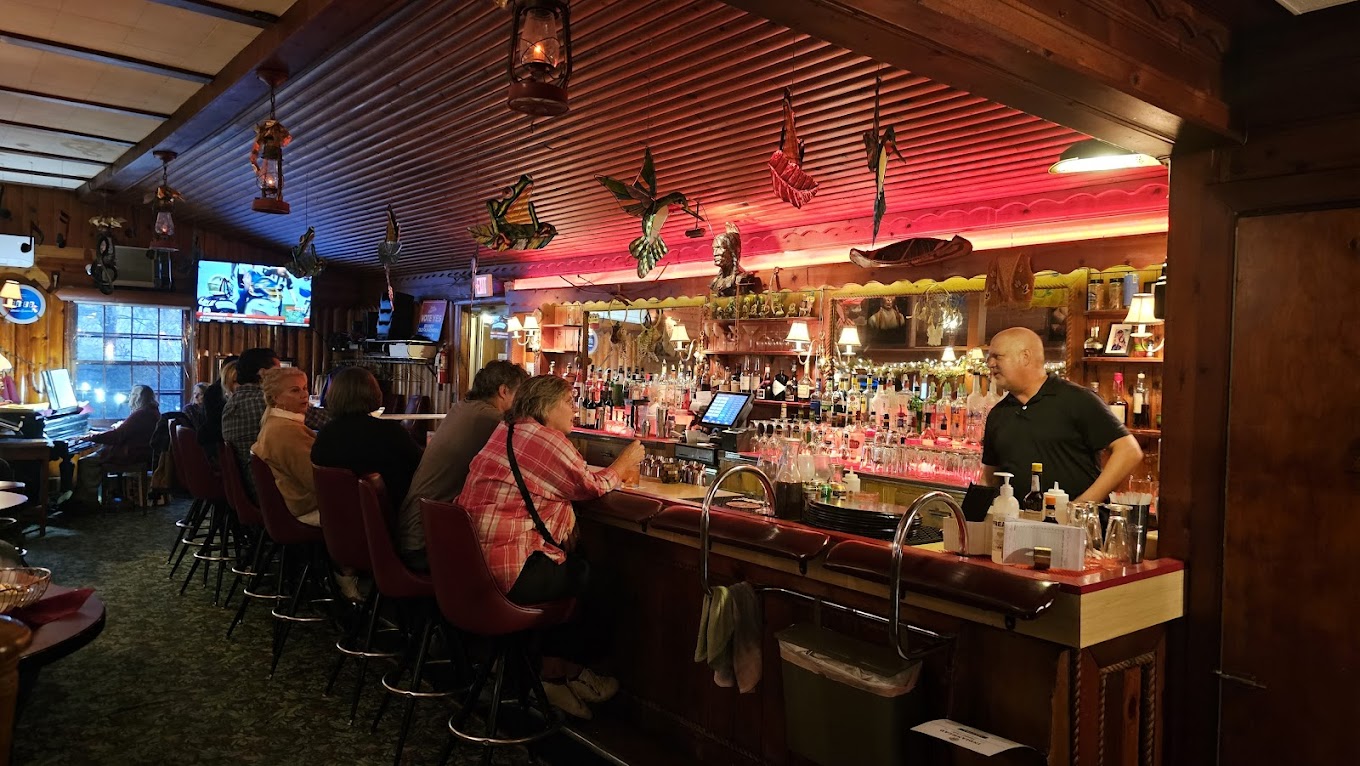 At least one room or bar area with wood paneling?